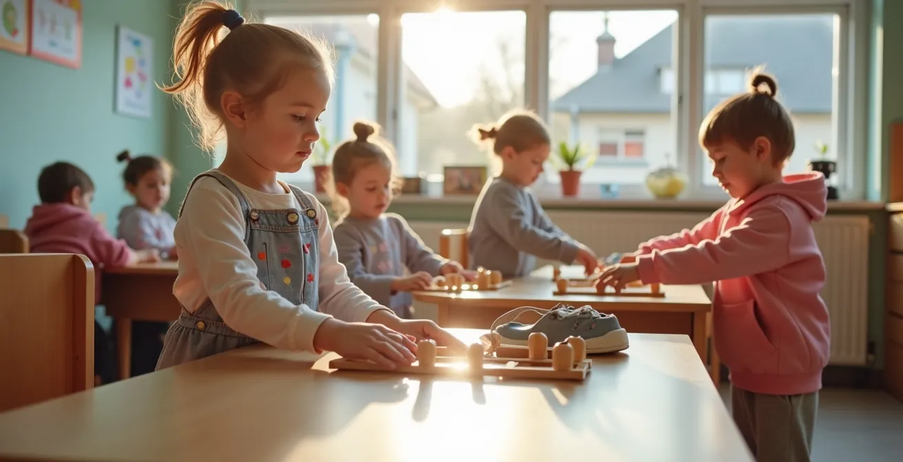 L’apprentissage des lacets est un processus bien plus complexe qui fait appel à la motricité fine, à la coordination bimanuelle et à la planification de séquences. Neurologiquement, la plupart des enfants ne sont pas prêts à maîtriser ce geste avant l’âge de 5 ou 6 ans. Forcer l’apprentissage trop tôt ne génère que de la frustration. Il est préférable de suivre une progression logique, qui respecte le développement de l’enfant.